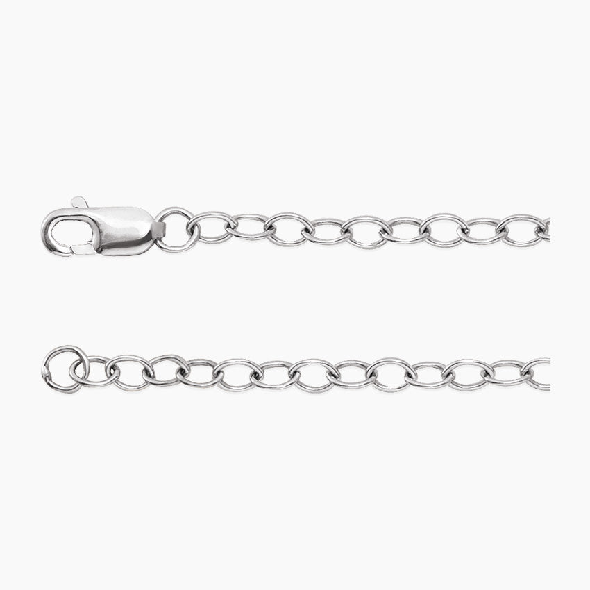 This 14k White Gold cable chain is pretty enough to wear on its own, but it also makes a great backdrop for a range of designs that include pendants, drops of components, or charms. The chain is robust, timeless, and uncomplicated. This chain has a width of 2.50mm and comes in three different length options.