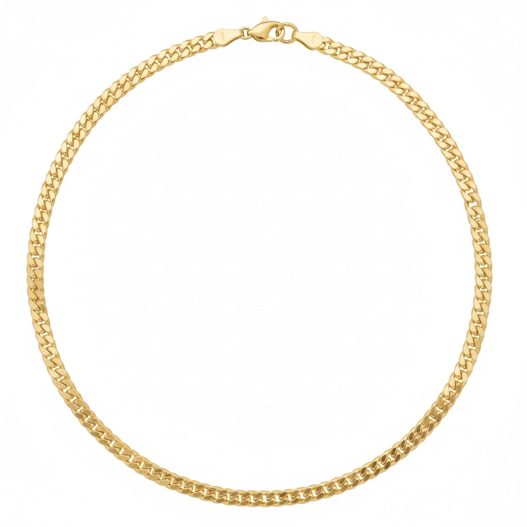 Bold, rounded, and instantly recognizable. The Miami Cuban is the heavy-hitter of gold chains. Unlike standard flat curbs, the Miami link is semi-domed and thick, giving it a substantial feel on the neck. It is the ultimate standalone piece that screams luxury.