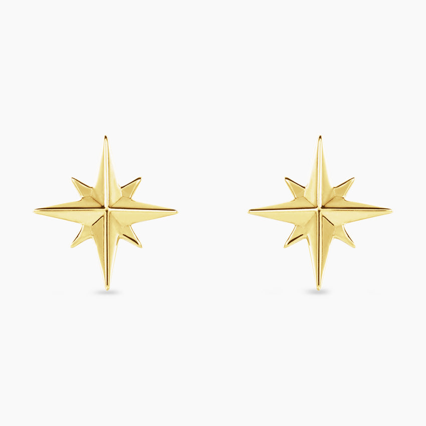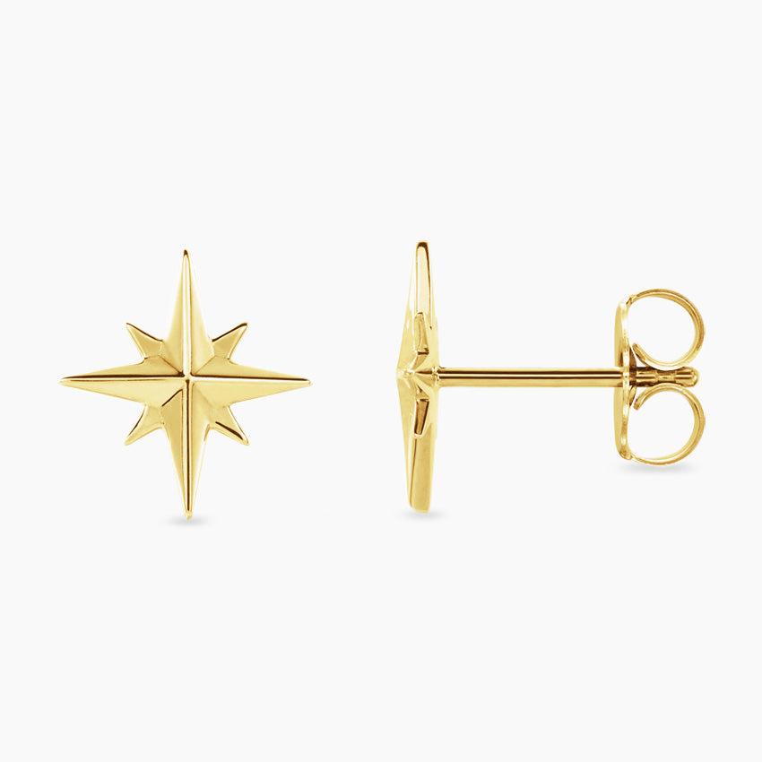 • With these earrings, your ensemble will have an elegant appeal. It has a star-shaped front that gives it a cute and stylish appearance, and it is flawlessly made of 14k Yellow Gold for a lovely radiance. This set of studs will look stunning added to your stack since they are polished for a sleek appearance.