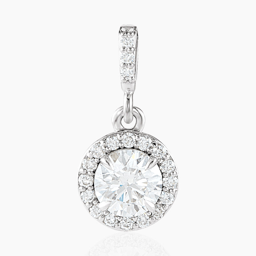The breathtaking round Diamond pendant is an eternal bit of fashion jewellery created to the finest standards. With one of our finest natural Diamonds in the middle, 18 other smaller but no less spectacular natural diamonds around it, and three additional equally magnificent diamonds on its bail, it is constructed of 14k White Gold. This diamond pendant's stylish style and eye-catching details will capture your heart.