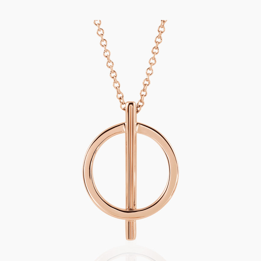 Our finest artisan expertly crafted this eye-catching necklace. It is made of 14k Rose Gold and has a circle and a bar design that is simple yet exquisite, making it the ideal present for any occasion and appealing to both trend-lovers and others who prefer a more timeless look.