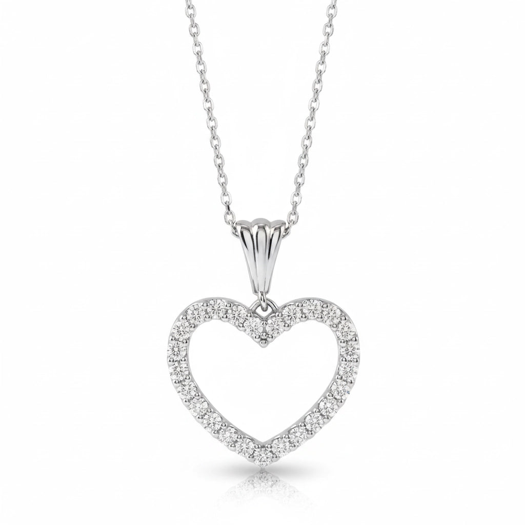 Sweet, timeless, and sparkling. This open-heart silhouette is outlined in shimmering diamonds (3/8 CTW). Unlike puffy hearts, this open design feels airy and sophisticated, making it perfect for women of all ages.