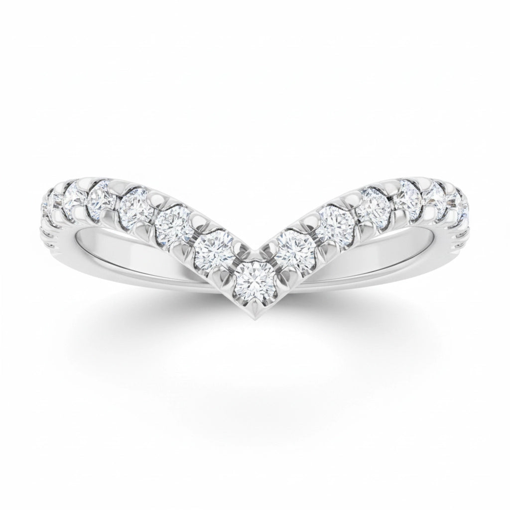 Finally, a band that fits. The deep "V" shape (Chevron) of this ring allows it to contour perfectly around large engagement stones (like Ovals, Pears, or Marquise), eliminating that awkward gap. With 1/2 Carat of sparkling diamonds, it is substantial enough to be worn alone as a trendy geometric statement piece.