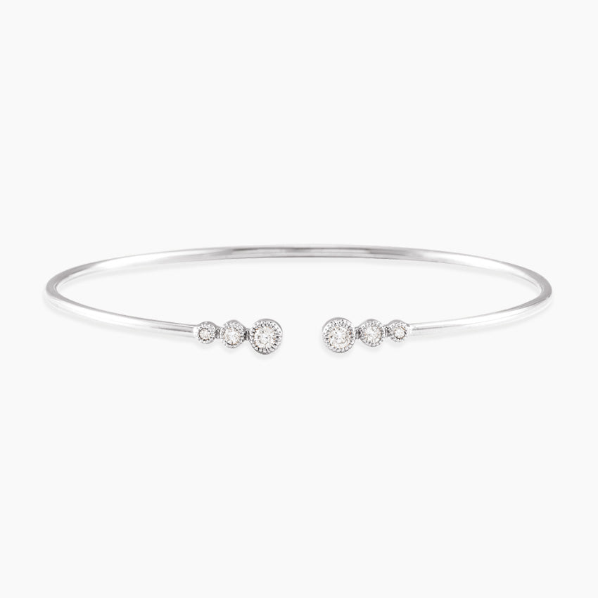 Make your sense of fashion stand out with this stunning cuffs. This bracelet, which is made of glistening 14k White Gold and has six sparkling diamonds ranging from small to large in size, is a magnificent addition that brings a touch of refinement and a touch of class to any outfit. These cuffs manage to combine elegance and sparkle in the ideal proportion.